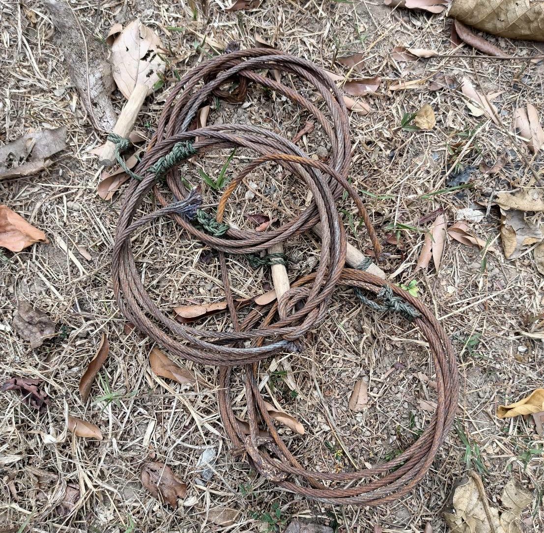 Freeland’s Tim Redford reports that 42 rangers have just safely returned to base after spending 10 days in the forest setting up their camera trap survey. The cameras will be recovered before the rains start in May. Whilst in the forest, the rangers confiscated what appear to be tiger snares, discovered a poachers camp and tackled a forest fire.